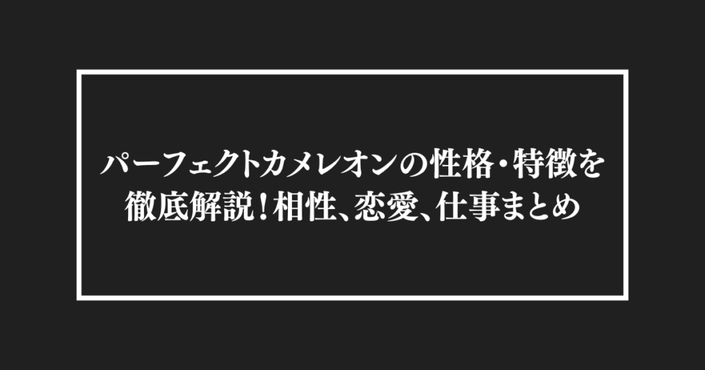 本記事では、パーフェクトカメレオンの基本性格から恋愛傾向、理想の相手像、相性の良いタイプ、そして仕事での強みまで徹底解説します。ぜひ参考にしてください。