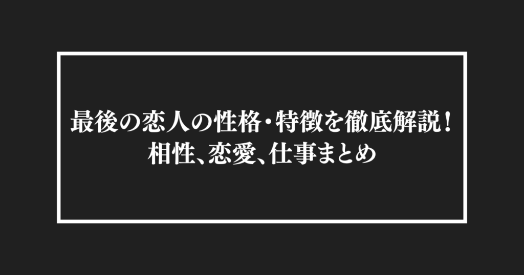 本記事では、最後の恋人タイプの基本性格から恋愛傾向、理想の相手像、相性の良い相手、さらに仕事での強みまで詳しく解説します。