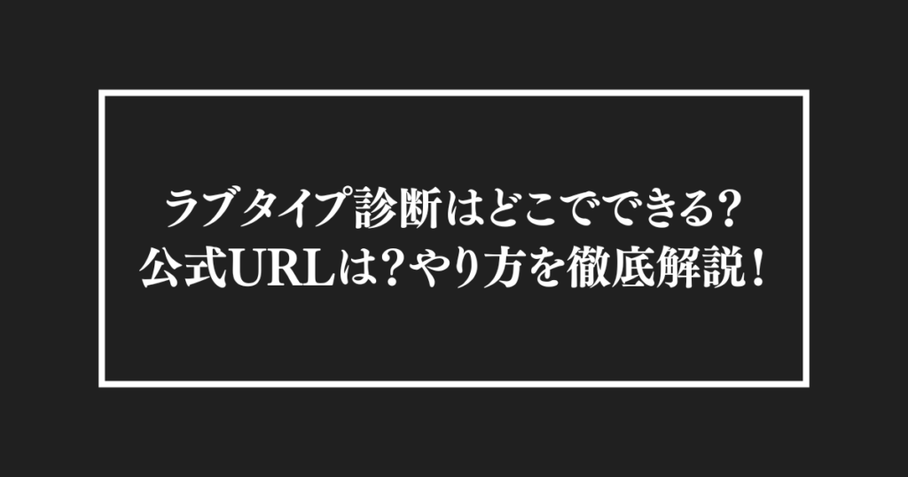 「ラブタイプ診断 どこでやれる?」と検索する人が急増していますが、公式の診断は以下のサイトから受けられます。