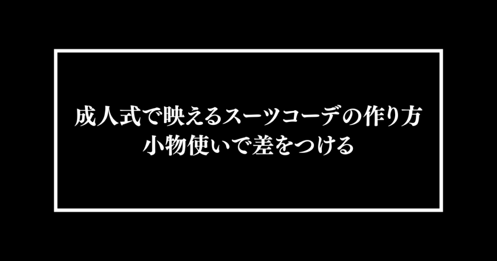 成人式で印象的なスーツコーディネートを作るには、色・柄・小物のバランスを意識することが重要です。清潔感と若々しさを保ちながら、写真映えする組み合わせを考えましょう。