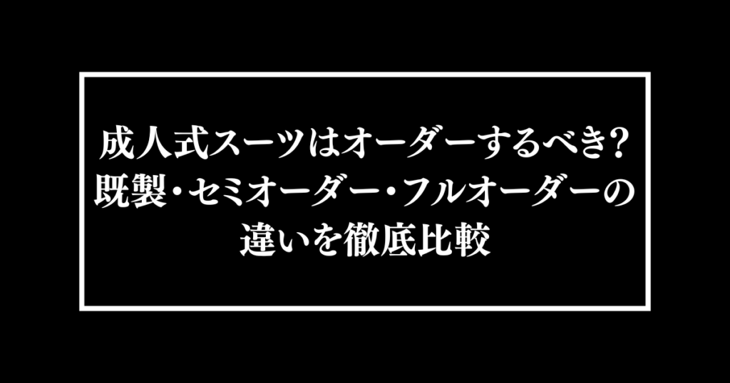成人式スーツはオーダーするべき?既製・セミオーダー・フルオーダーの違いを徹底比較